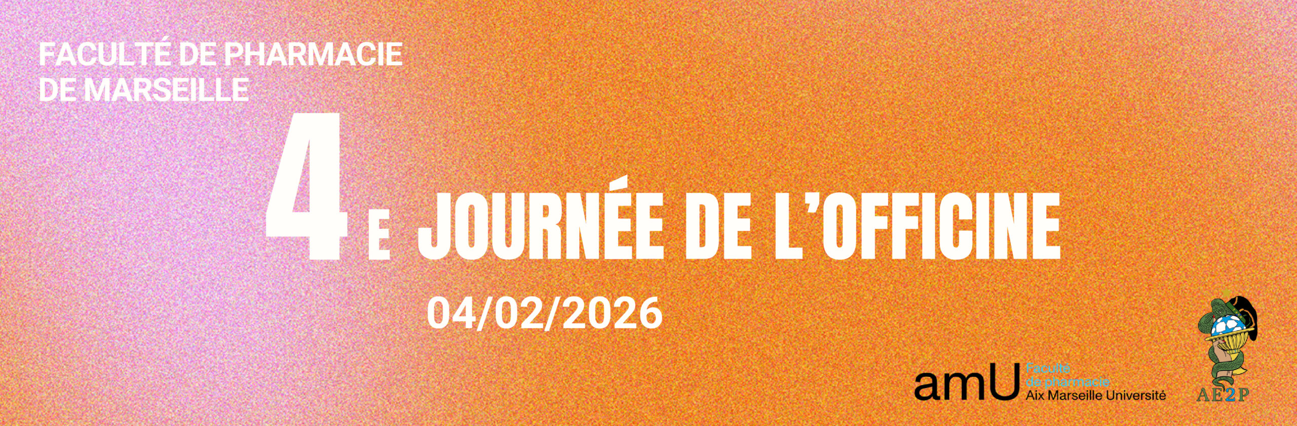 La 4ᵉ Journée de l’Officine, organisée par l’AE2P (Association des Étudiants en Pharmacie de Provence), se tiendra le mercredi 4 février à la Faculté de Pharmacie de Marseille.
