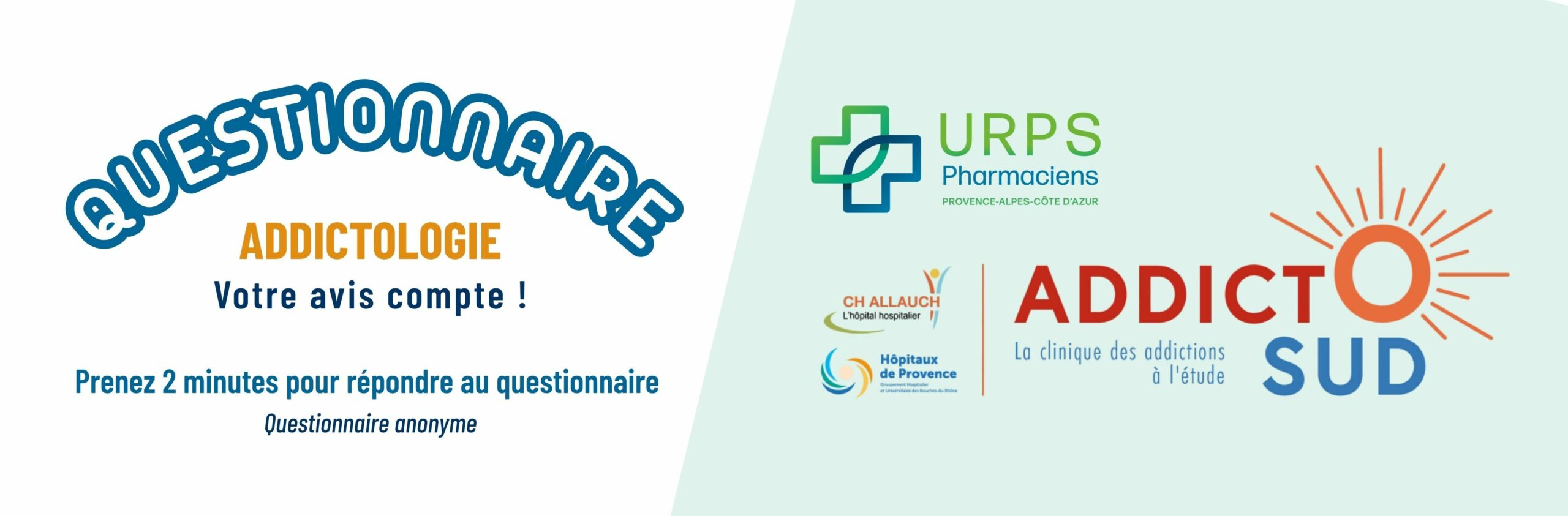 En vue du prochain congrès d’addictologie du 27 et 28 avril 2026 à l’Hôpital de La Timone, l’URPS pharmaciens PACA vous donne la parole sur le sujet de l’addictologie et porte votre voix auprès des autres professionnels de santé à travers un questionnaire anonyme.