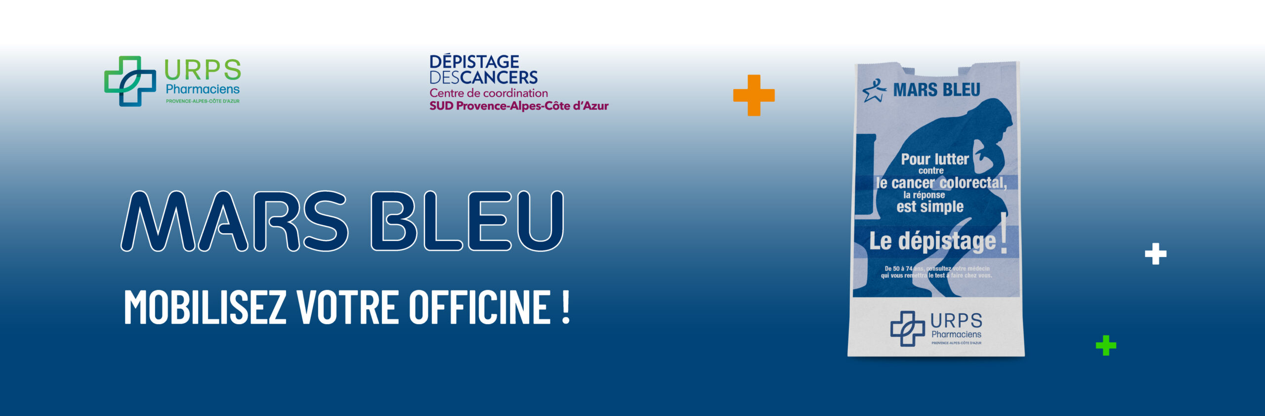 Les 80 premières officines qui répondront à notre questionnaire et auront suivi la formation en ligne dispensée par le Centre Régional de Coordination de Dépistage des Cancers SUD PACA (CRCDC) recevront 500 sacs à l’effigie de Mars Bleu (dans la limite des stocks disponibles).